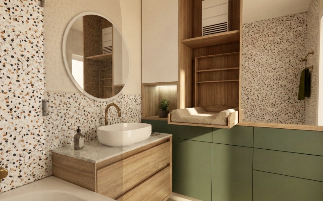 Rénover à 7000 km de distance, qui plus est sans plans architecturaux préexistants, a transformé ce projet en une véritable aventure humaine. Loin d’une gestion technique rigide, nous avons travaillé « main dans la main ». Mon rôle a été de pallier l’absence de repères techniques par la puissance de la projection 3D. Ces visuels ont servi de boussole commune, permettant aux clients de valider les ambiances et les volumes avec certitude malgré la distance. Au-delà de la conception, je les ai accompagnés étroitement dans leurs recherches shopping, agissant comme un filtre esthétique pour s’assurer que chaque meuble ou décoration sélectionné s’intègre parfaitement à l’histoire que nous écrivions ensemble.