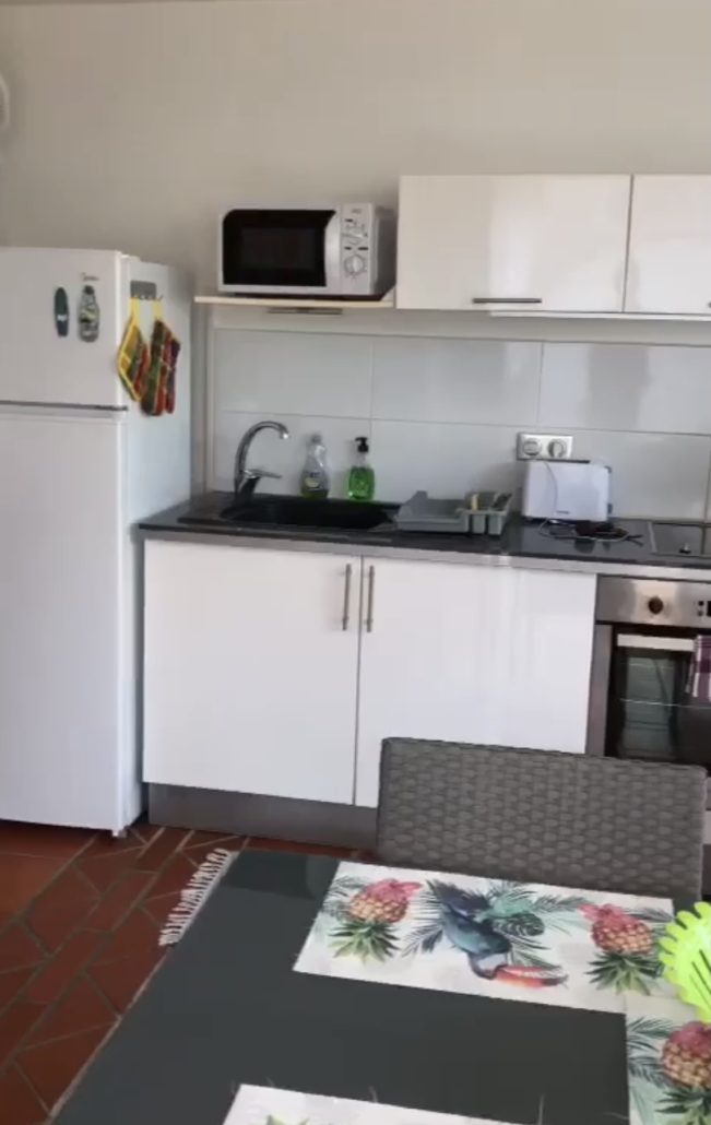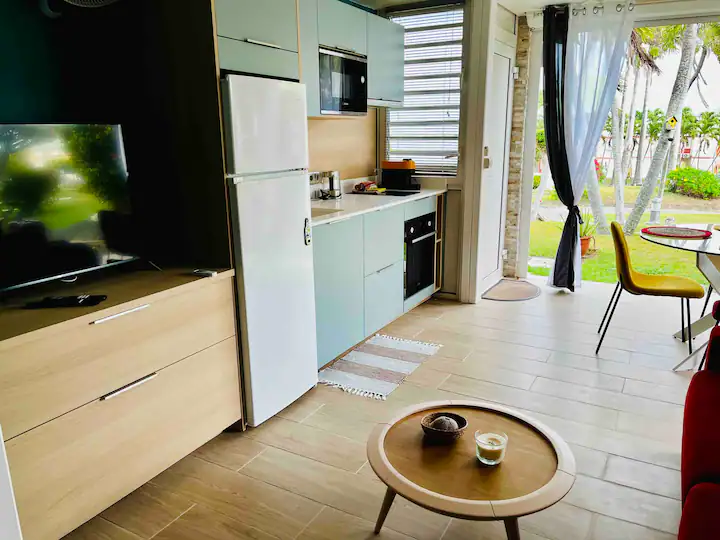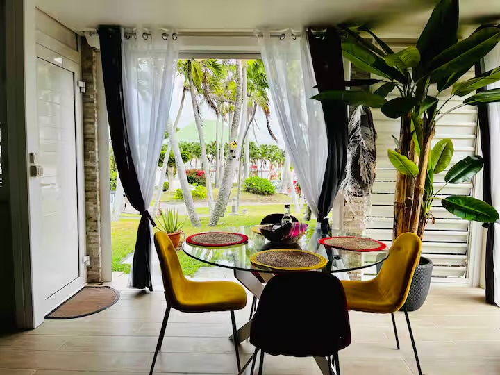 Ce projet de rénovation complète se distingue par sa localisation – la Guadeloupe – et son défi logistique : une gestion entièrement à distance. L’appartement initial était en rupture totale avec son environnement bucolique. Dominé par le gris, le blanc et le métal, il dégageait une froideur clinique. En psychologie de l’habitat, le gris est souvent associé au labeur, au sérieux et à la neutralité administrative. Pour ce couple de clients, médecins en métropole, cet intérieur « gris » évoquait inconsciemment la lourdeur du travail et la charge mentale, rendant la déconnexion impossible.