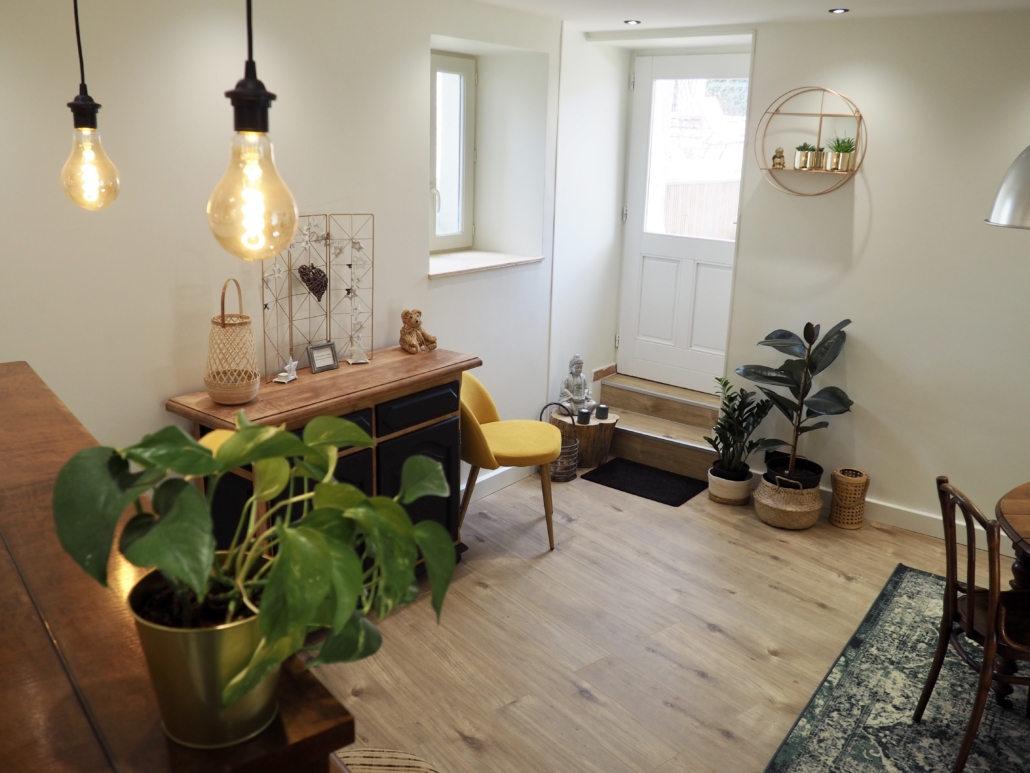 Pour ce projet de coaching déco, le défi initial était de taille : la pièce principale souffrait d’un déficit majeur de luminosité. Typique des bâtisses anciennes, l’espace était assombri par des murs très épais et des fenêtres trop petites. L’objectif était donc double : métamorphoser l’espace selon les préceptes du Feng Shui pour l’harmonie, mais surtout mener un véritable combat pour faire entrer la lumière.