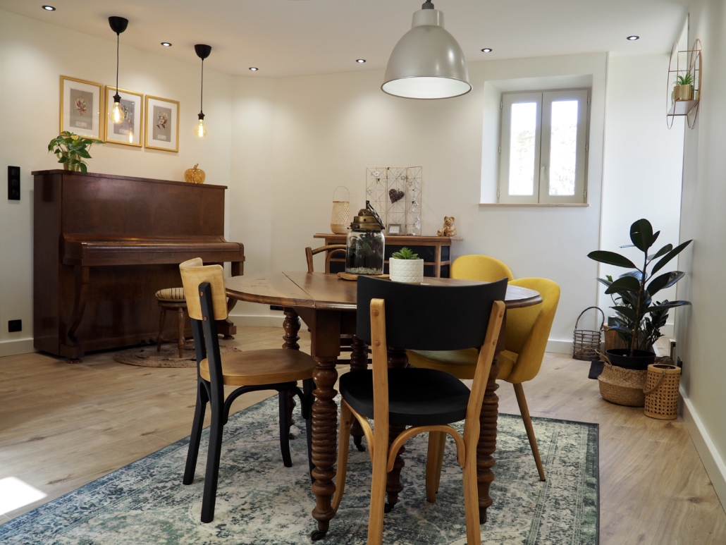 Cette salle à manger est la preuve qu’une pièce sombre n’est pas une fatalité. Grâce à une stratégie pointue sur la réflexion de la lumière et un aménagement Feng Shui, cet espace autrefois terne est devenu un lieu de vie chaleureux, lumineux et parfaitement adapté aux grandes tablées familiales.